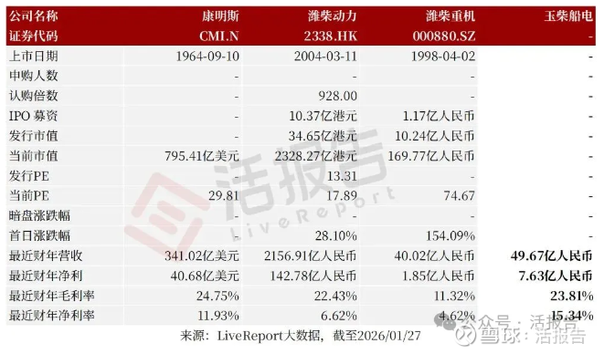 2026年1月27日,玉柴船电首次向港交所递交招股书,拟在香港主板上市,联席为中国银河国际和招商证券国际。公司控股股东玉柴国际(CYD.US)于1994年在美国纽交所上市,截至2026年1月28日的市值达17.86亿美元。