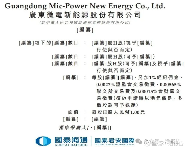 2026年1月26日,微电新能源首次向港交所递交招股书,拟在香港主板上市, 独家保荐人为国泰海通。