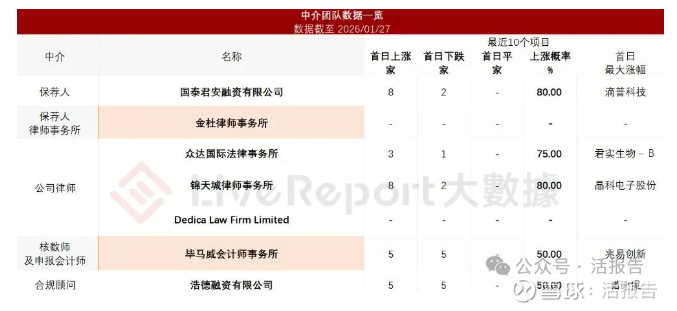据LiveReport大数据统计,微电新能源中介团队共计7家,其中保荐人1家,近10家保荐项目数据表现良好;公司律师共计3家,综合项目数据表现稳妥。整体而言中介团队历史数据表现普通。