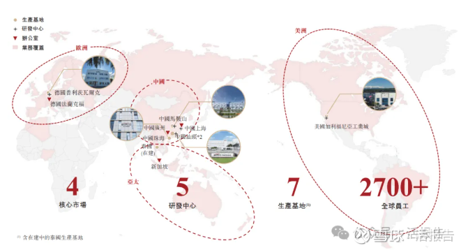 公司已建立横跨中国市场、美洲市场、欧洲市场及亚太市场的全球业务布局,拥有六大生产基地(另有一座正在兴建中)及五大全球研发中心。公司的产品已触达全球逾50个国家与地区的客户。值得注意的是,截至2025年9月30日止九个月期间,海外市场贡献收入占同期总收入比例达61.2%。