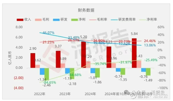 收入分别约为人民币2.90亿、3.37亿、5.20亿、4.23亿、5.84亿,2025年前10月同比+37.98%;