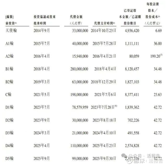 公司上市前经历了11轮融资,累计融资近10亿元人民币。在2025年9月的D5轮最新融资中,每股成本约42.72元,对应公司的投后估值约为25.39亿人民币。