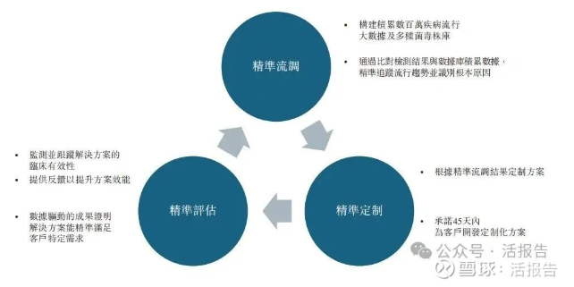 (i)为客户提供精准防控解决方案。这涉及「精准流调、精准定制、精准评估」的服务体系:公司通过精准流调检测结果及时准确识别流行菌株及其变异趋势,据此通过精准定制开发更新解决方案以应对流行菌株,并通过精准评估持续追踪临床疗效;