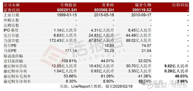 生物股份(600201.SH)、普莱柯(603566.SH)、瑞普生物(300119.SZ)