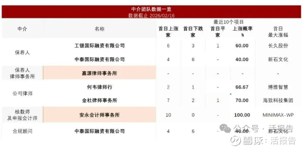 据LiveReport大数据统计,信得科技中介团队共计7家,其中保荐人2家,近10家保荐项目数据表现不尽如意;公司律师共计2家,综合项目数据一般。整体而言中介团队历史数据表现一般。