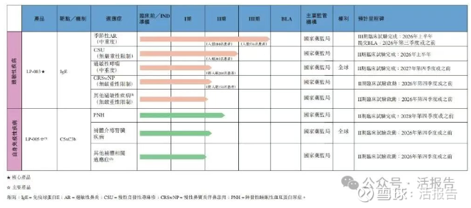 公司的主要产品LP-005是一种靶向C5及C3b补体的双功能抗体融合蛋白,用于治疗阵发性睡眠性血红蛋白尿症(PNH)、补体介导肾脏疾病(包括IgA肾病(IgAN)、C3肾小球病(C3G)及狼疮性肾病或狼疮性肾炎(LN)以及全身型重症肌无力(gMG)、抗MAG周围神经病变(MAG-PN)和肌萎缩侧索硬化症(ALS)。