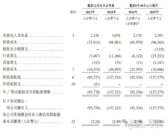 研发分别约为人民币-0.74亿、-0.98亿、-0.66亿、-0.96亿,2025年前9月同比+46.05%;