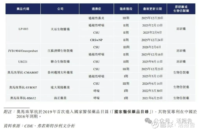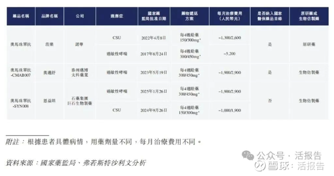 截至最后实际可行日期,三种抗IgE抗体药物已获国家药监局批准,包括一种原研药及两种生物仿制药。