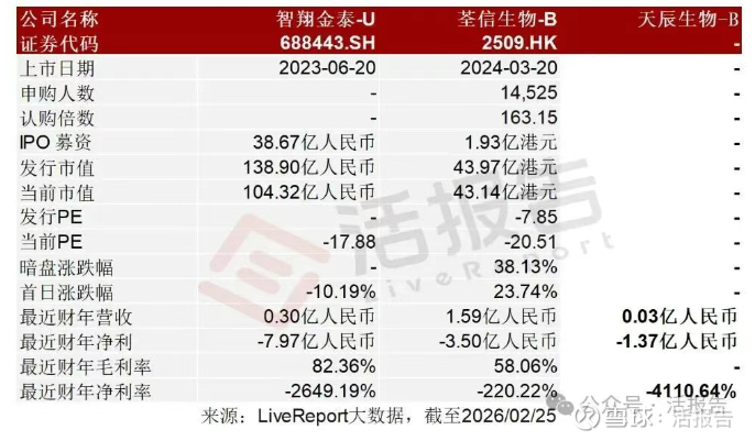 同行业IPO可比公司:智翔金泰-U(688443.SH)、荃信生物-B(2509.HK)