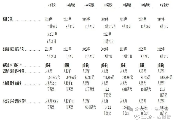 公司上市前经历了多轮融资,累计融资约5.2亿元人民币。在2025年5月的C轮最新融资中,公司的投后估值约为20.1亿人民币。