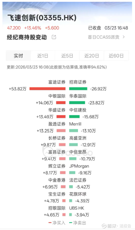 经纪商方面,首日净买入最多的是富途证券、中银国际、华盛证券,分别净买入53.82万股、14.06万股、13.49万股;净卖出最多是的招商证券、华泰国际、中信建投,分别净卖出26.92万股、23.82万股、15.68万股。