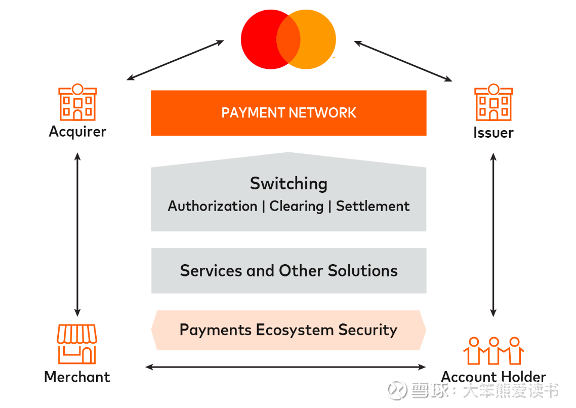 维萨(和万事达卡Mastercard类似):支付网络,接近100%非利息