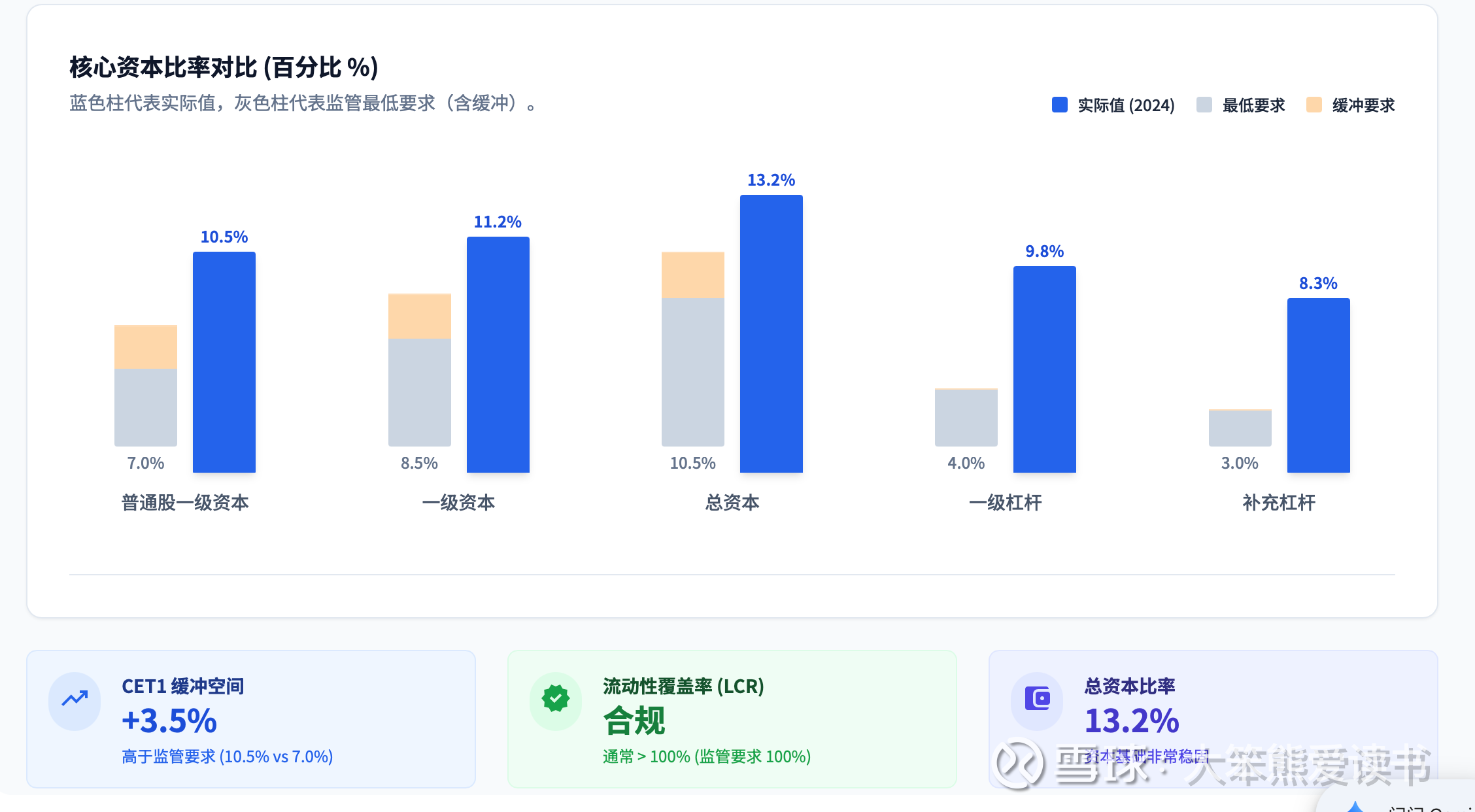 美国运通满足巴塞尔协议的要求。巴塞尔协议决定了金融机构不能有过高的杠杆,也就给过于仰仗利息收入的金融机构设定了盈利「天花板」。