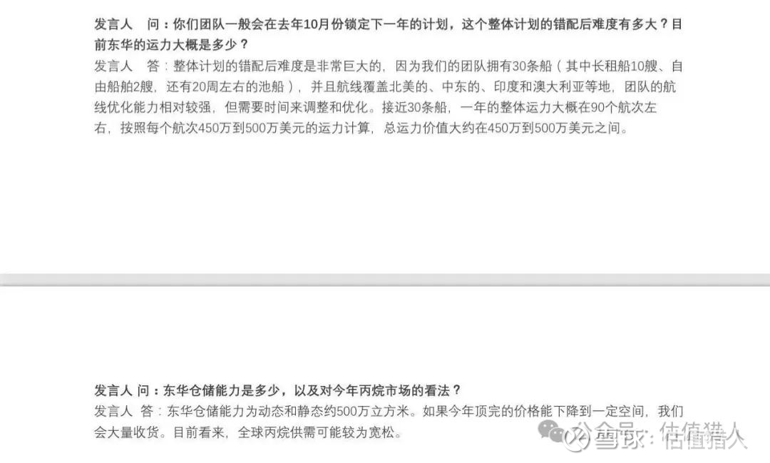 丙烷这东西季节性极强。夏天淡季老美那边跌成狗,冬天取暖旺季涨成仙。东华在宁波等地有百万方级的地下洞库。它在夏天淡季,开着30艘巨轮疯狂把白菜价的货拉回来,锁在洞库里。到了冬天旺季,或者中东打仗供给休克的时候,它抽出来的全是去年的低价货。