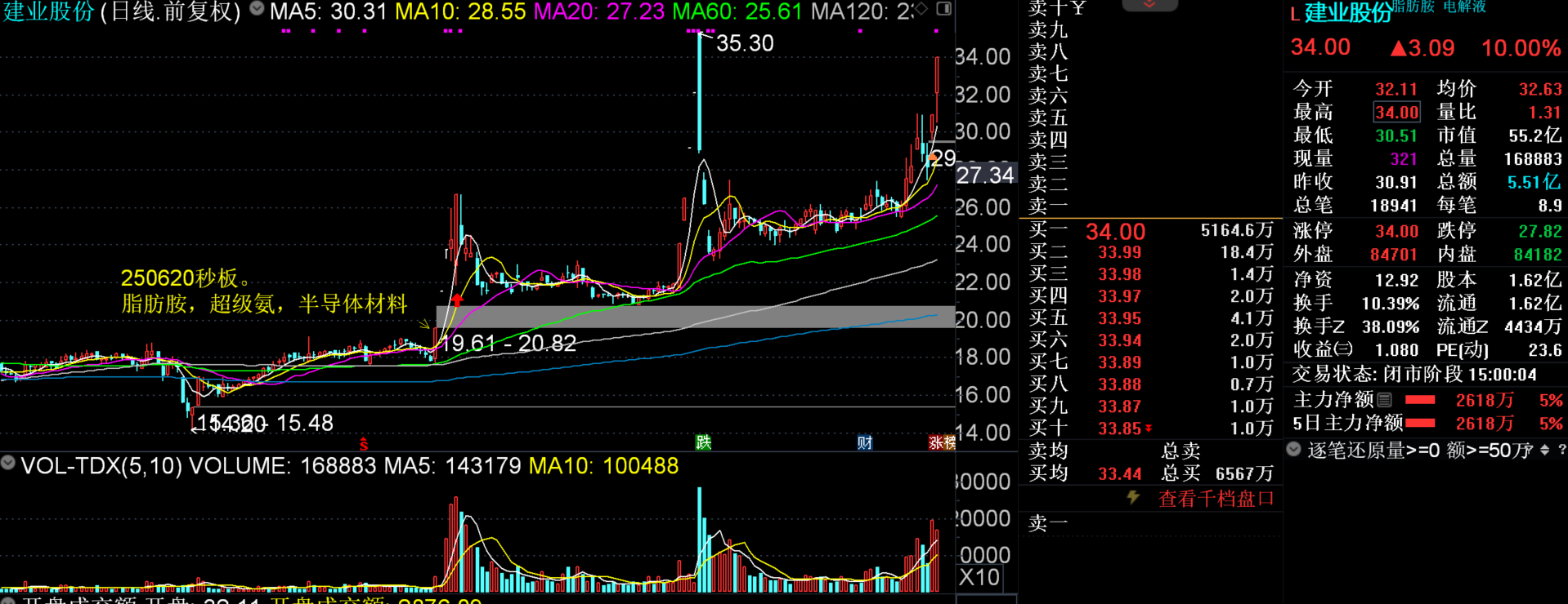 我在2025年11月13日上午建业股份启动前发布的《建业股份——电解液VC上游材料+三乙胺涨价》,精准的把握了建业股份的起爆点,并迎来了建业股份的强势二板涨停。