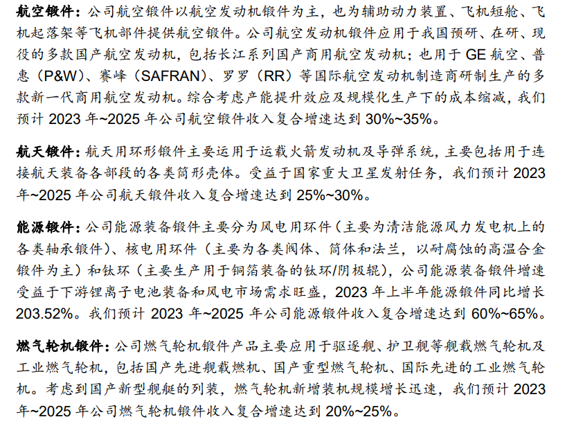 产品与价值:为火箭发动机提供涡轮盘、泵壳体、法兰等核心高温合金及钛合金环锻件,并向精加工和部件装配延伸。公司预计2025年该业务收入将达数千万元,并有望随商业发射高频化而快速提升。