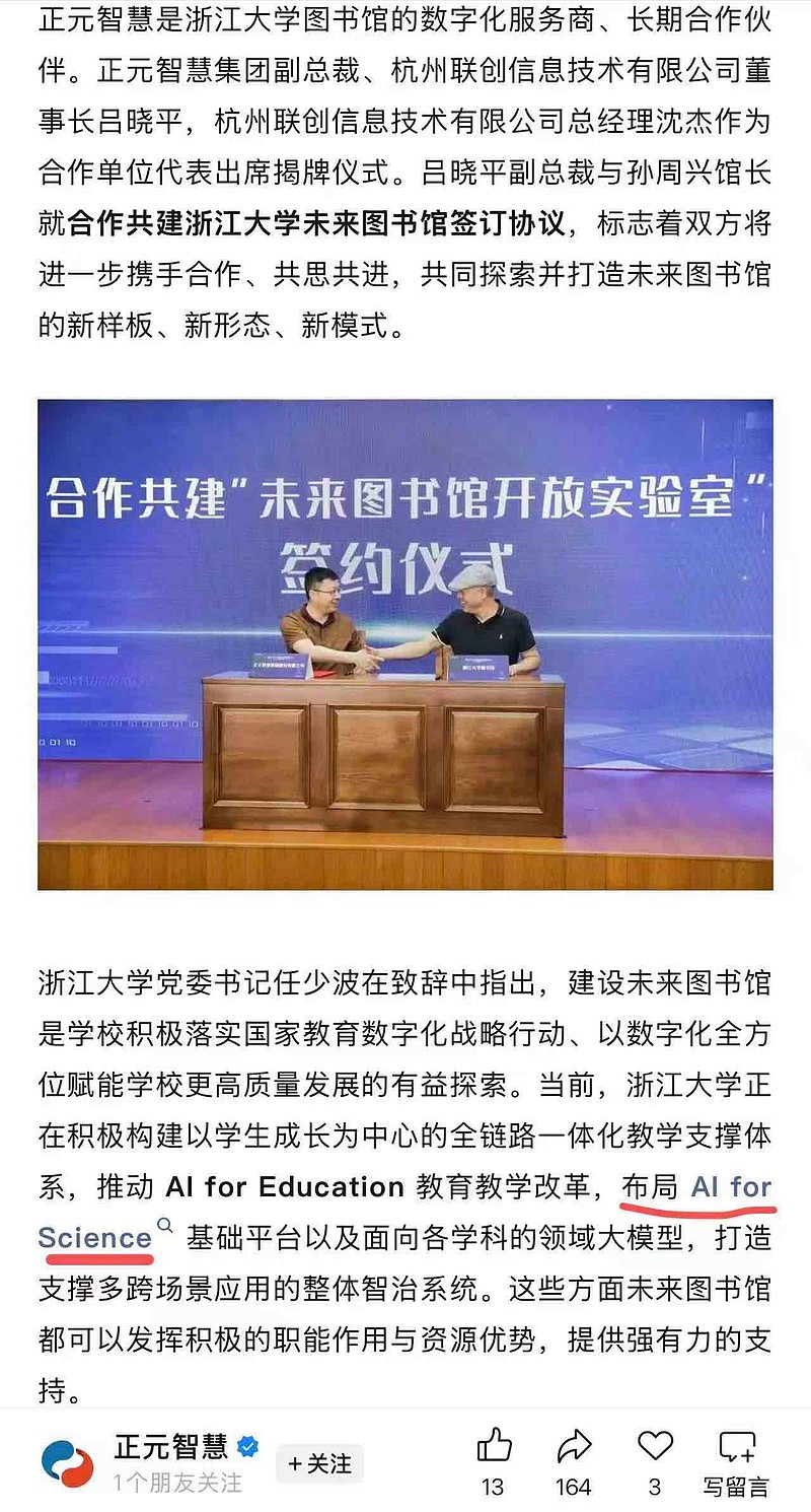 ai4s+ai教育,正元智慧ai4s强势,ai应用强势,ai4s+ai教育,正元智慧正元智慧官微:正在积极构建以学生成长为中心的全链路一体化教学支撑体系,推动 AI for Education 教育教学改革,布局 AI for Science 基础平台以及面向各学科的领域大模型,打造支撑多跨场景应用的整体智治系统。$志特新材(SZ300986)$ $正元智慧(SZ300645)$
