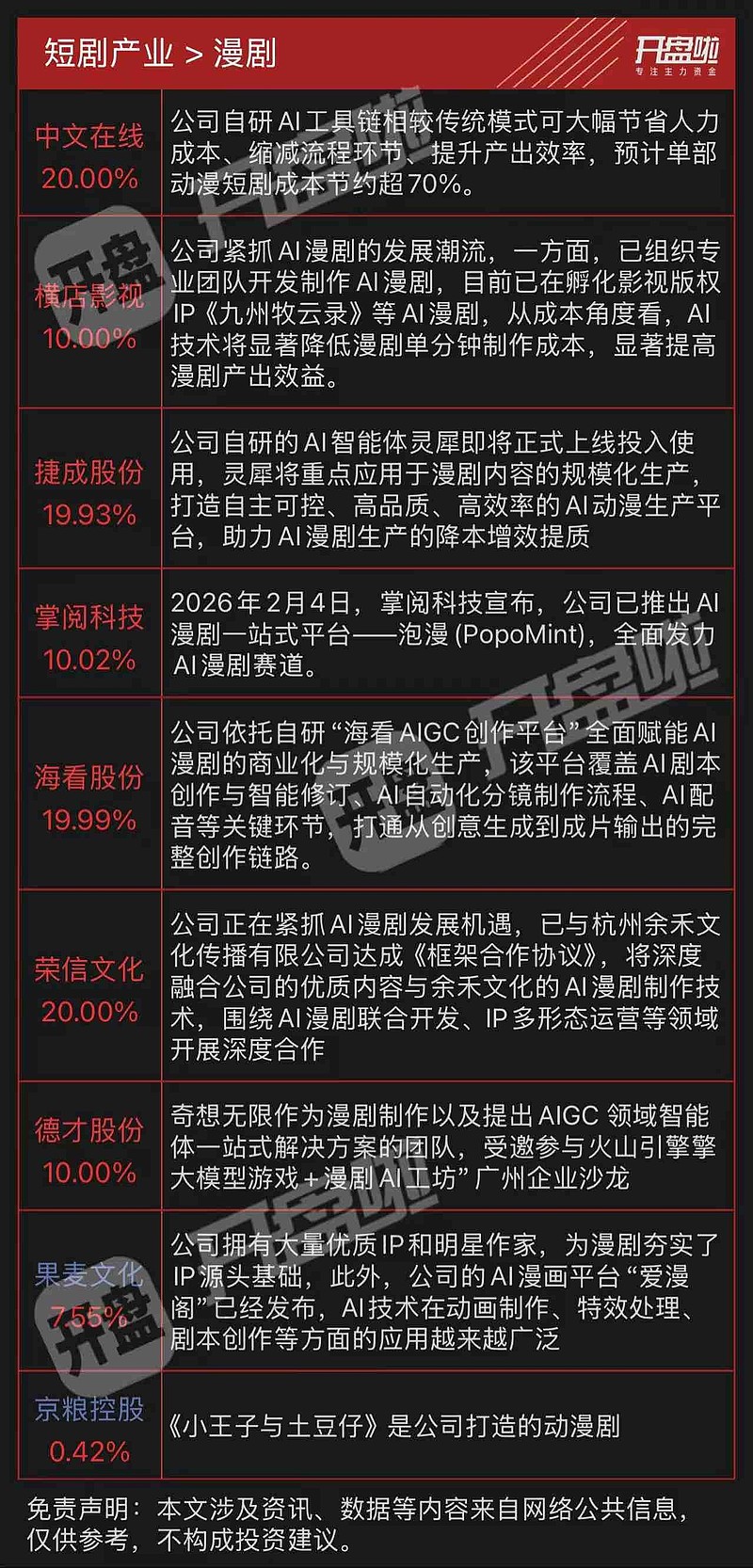 :开盘啦新增ai漫剧概念,唯一低位漫剧