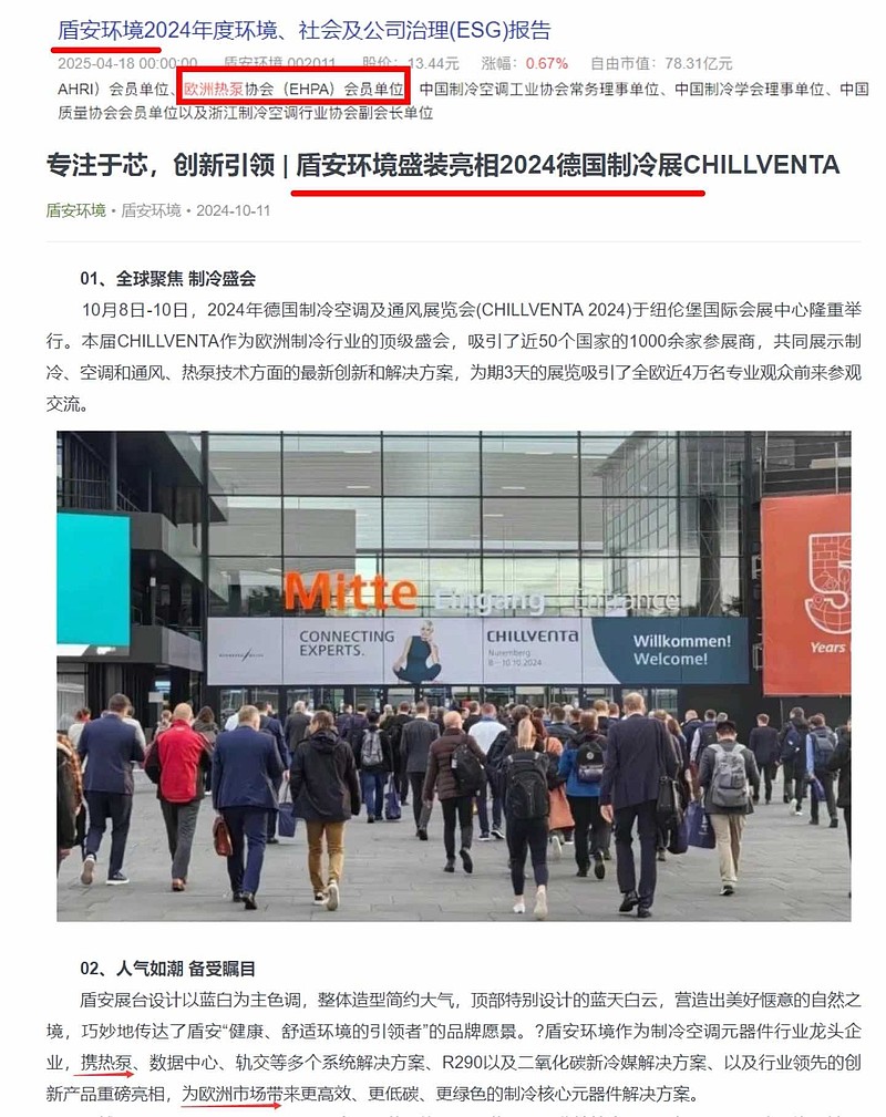 欧洲热泵:公司是欧洲热泵协会(EHPA)会员单位;公司携热泵亮相2024德国制冷展CHILLVENTA,为欧洲市场带来更高效、更低碳、更绿色的制冷核心元器件解决方案;2019年年报显示2019年公司联合校企完成的《寒冷及严寒气候区空气源热泵关键技术开发与应用》项目在低环温空气源热泵的应用基础研究、关键装备开发、性能测试评价方面取得重大突破,荣获中国机械工业科学技术一等奖。