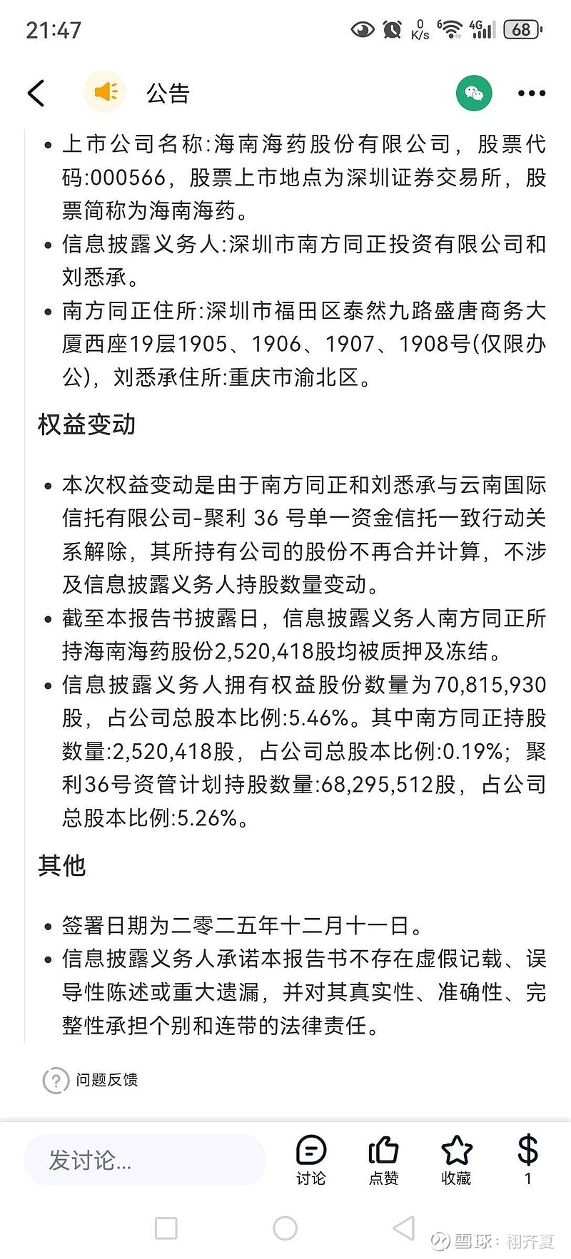 牛哥,这个可以怎么解读?!就是刘悉承的表决权仅为0.19%,另外的5.26%归浦发银行所有。然后今天这个是属于提前释放了这个不确定性因素的利空吗?!这个对际华之前承诺的3月十几号之前解决同业竞争问题,为后面的华津的资产注入,提前做好准备吗?!@牛牛121386#海南海药#