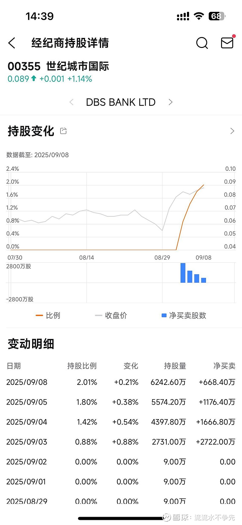 被星展dbs的大户盯上,四天直接买走了2%的股份