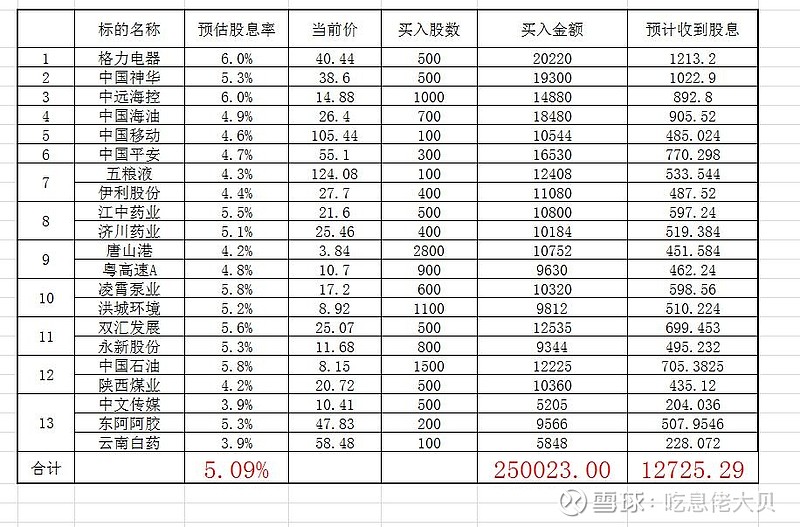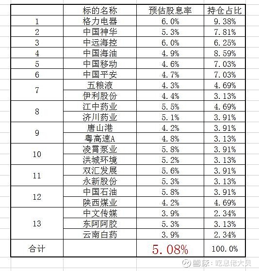 格力昨天也一度到达40,我觉得性价比已经高过中远海控,所以海控换格力,吃股息账户最新持仓如下: