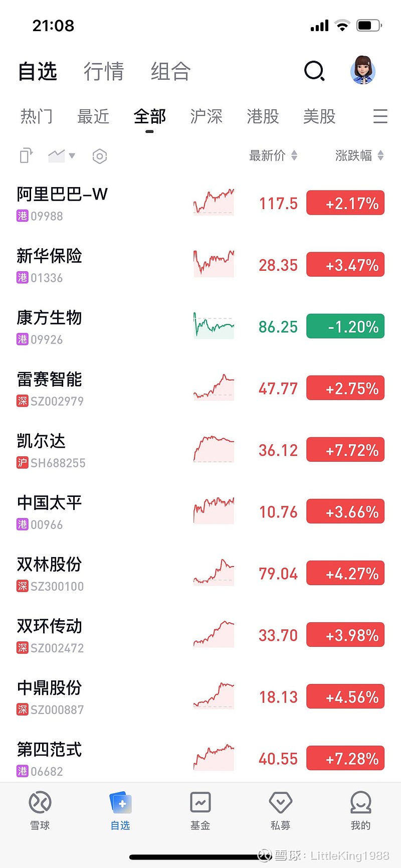 港股有阿里巴巴,新华保险,康方生物,中国太平,第四范式。新买了一点中国有色矿业。