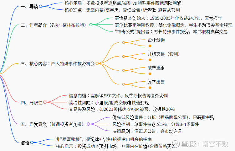 核心启示:投资的成功不在于预测市场,而在于理解公司的内在价值,并在合适的价格买入。正如格林布拉特所说:"股市天才不是生就的,而是练就的。通过自己的分析,正确地为特殊事件中的公司股票做出评判,才能真正获得巨额收益。"