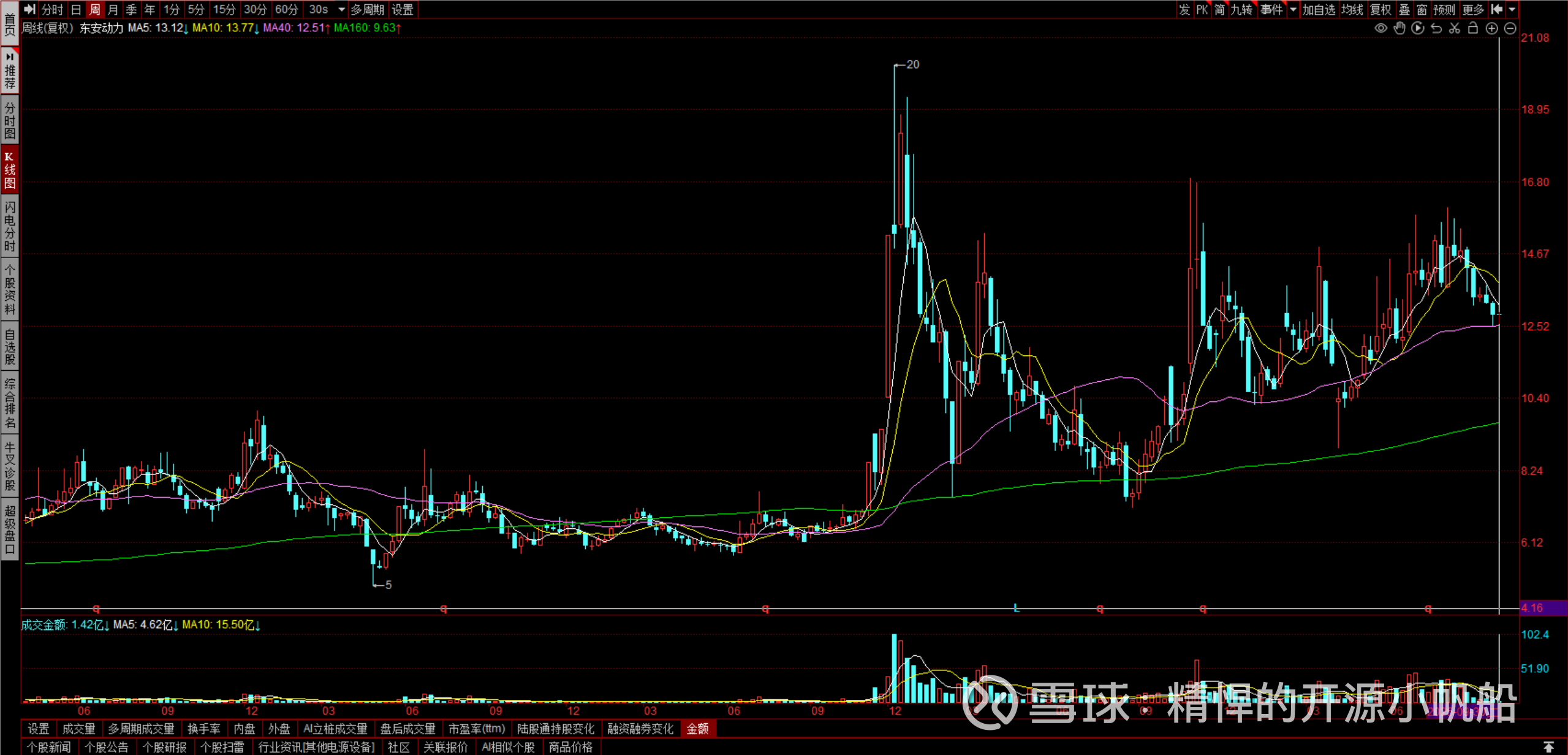 东安动力,你们觉得怎么样,目前在周线来看是下跌的回到周线的中枢里面。从月线上看来等这个周线重新稳住之后,18块 还是很有希望的,最好能调整到11.5左右;并且年线也不错,估计按年线走,5倍差不多;当然中间的调整(回撤)得以几个季度来算。
