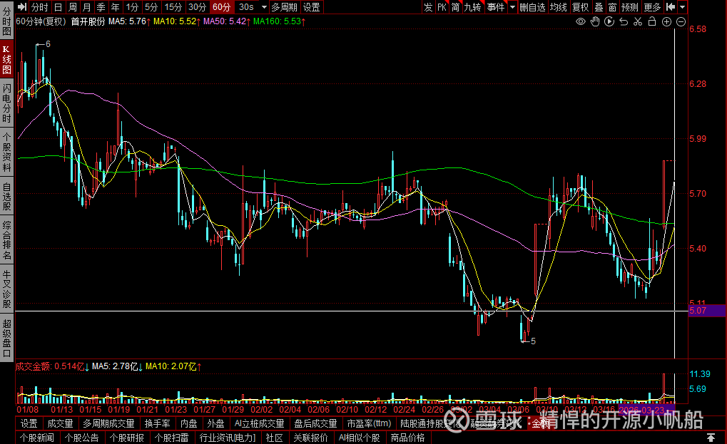 昨天首开涨停,在涨停前出了一半,降降成本;从盘面上看昨天尾盘封单力度不是太够,并且在60分钟上已经突破之前的高点。