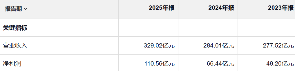 2025年329亿元的收入,净利润居然有110亿元,净利润率高达33%。