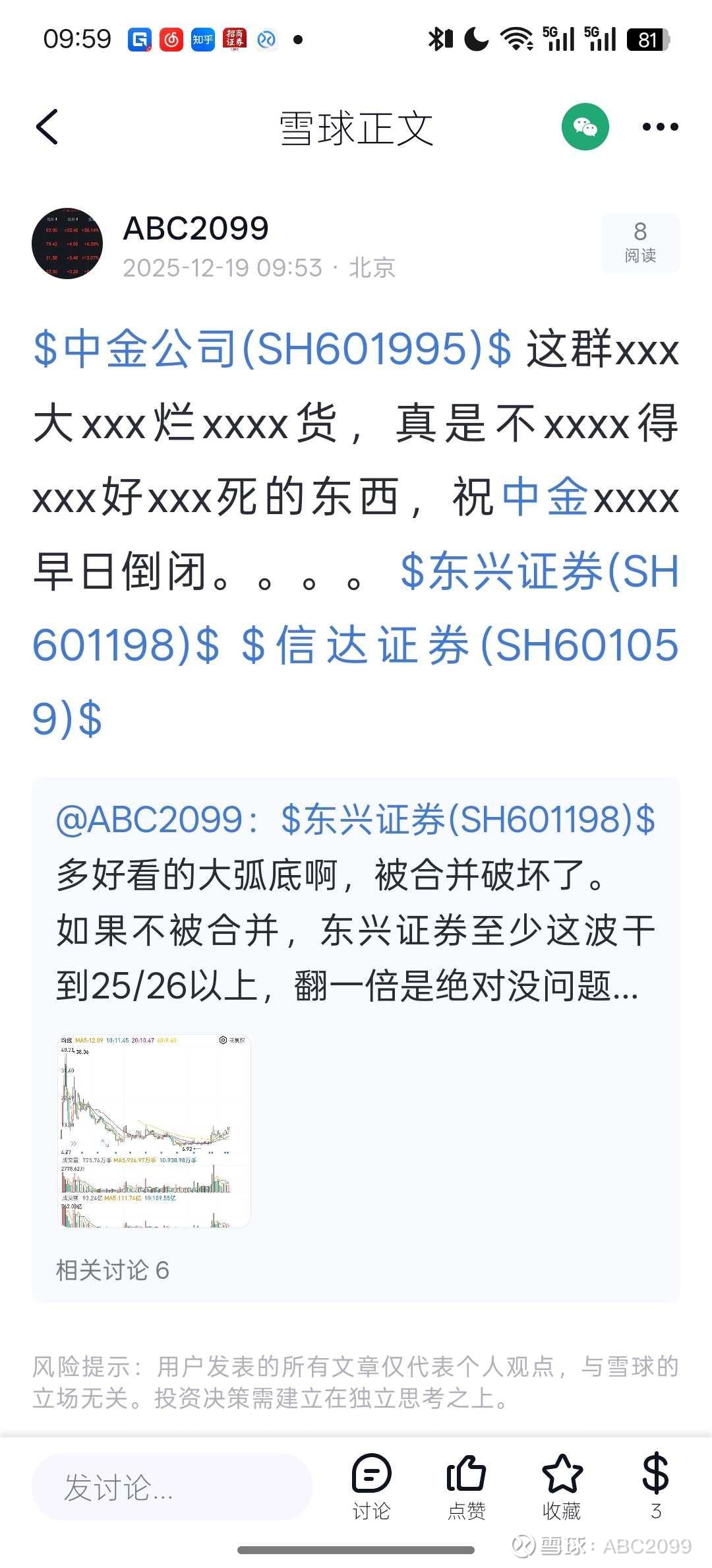 $山东高速(SH600350)$ 你们山东高速的计提6.9个亿,那真是搞笑了。。。山东高速被中金这个并购害惨了。【山东高速(600350.SH)拟计提东兴证券长期股权投资减值准备约6.9亿元】网页链接查看图片//@烟台股民老李: 回复@烟台股民老李: 这么大幅震荡,老夫真是开眼了,中金公司、东兴证券里面的散户基本跑光了,这才是带血的筹码,缺大德了