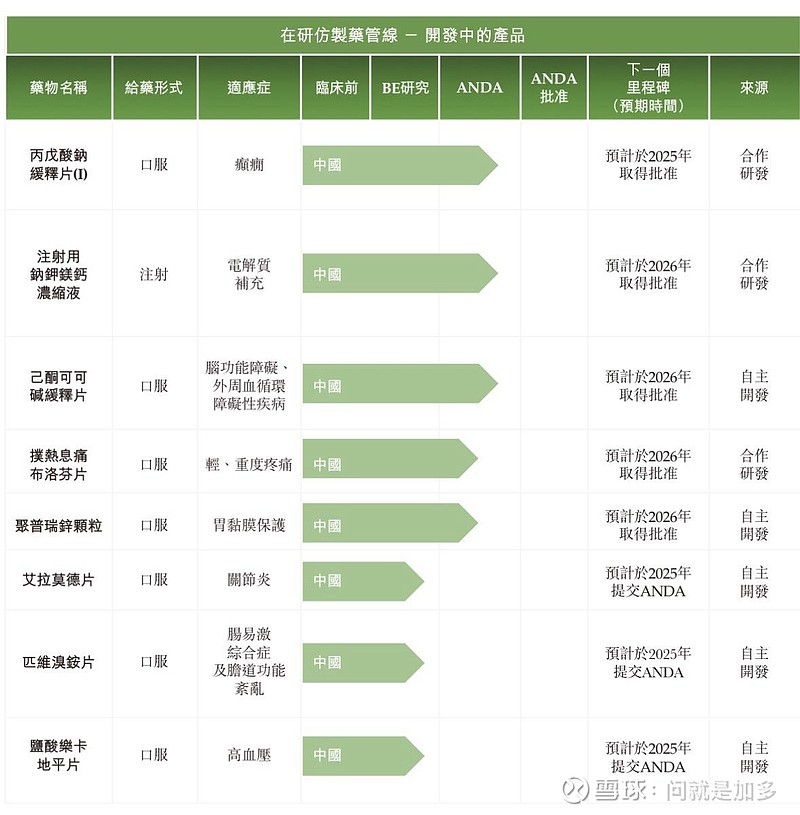 目前,公司已就14款仿制药获得国家药监局批准,并建立拥有四款在研创新药的管线,使公司成为中国制药行业的主要市场参与者。