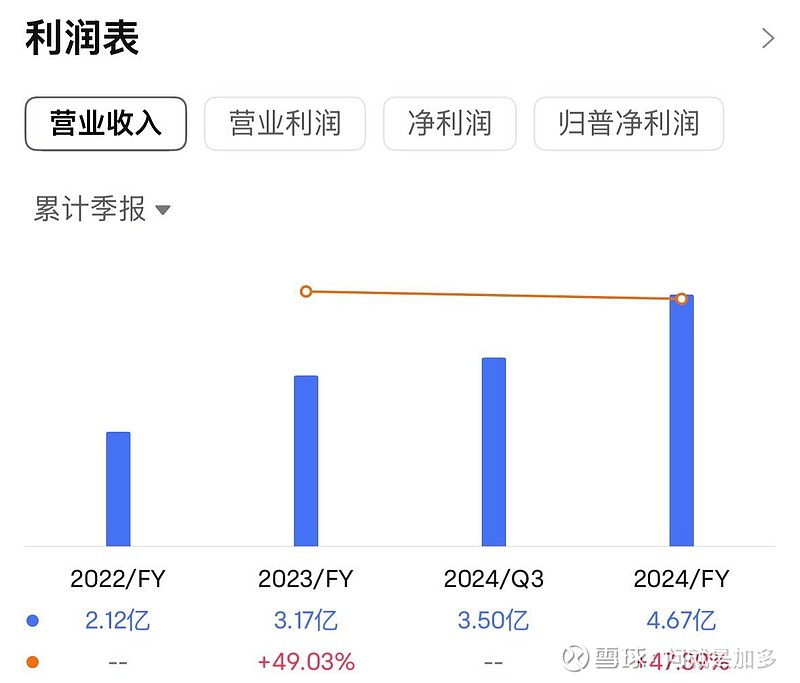 收入分别约为人民币2.12亿元、3.17亿元、4.67亿元、1.81亿元及2.49亿元,年复合增长率为48.21%。