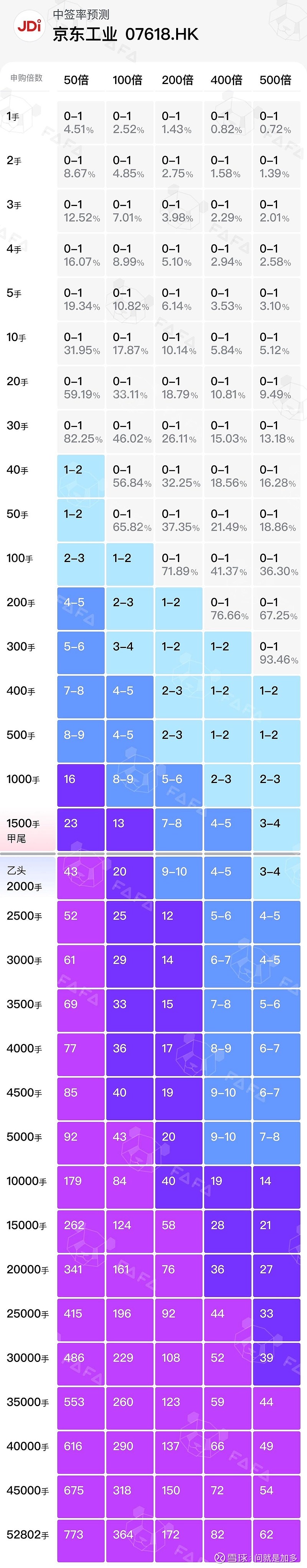 京东工业和宝济药业是冲突的,估计很多人首选会选择认购宝济药业,而且京东工业发的估值又比较贵,那大概率孖展认购不会超过500倍,如果最终认购300倍,那么甲尾乙头大概率都能稳中5-6手左右。