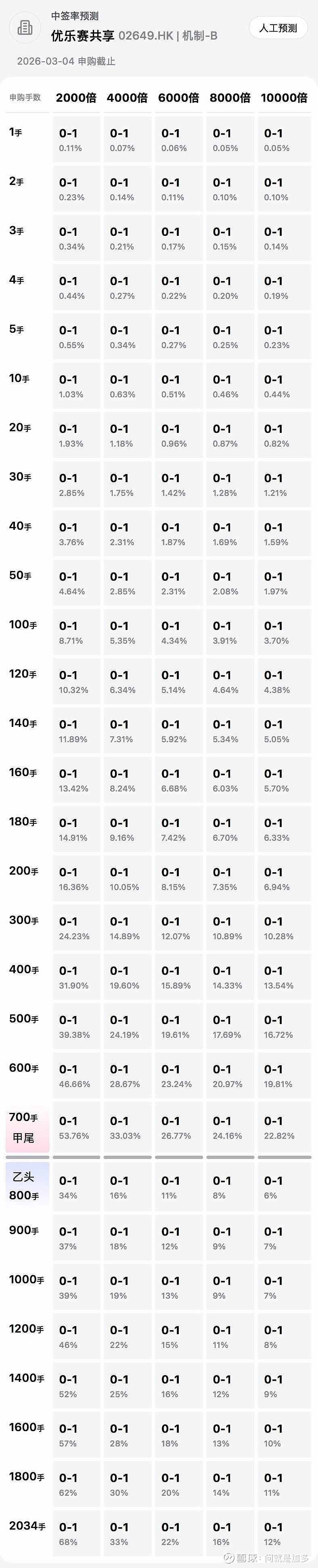 这次优乐赛发行了22.51%的股份,一手7000多。甲乙共4067手,公开2848万的货,孖展大概率上4000倍,甲尾乙头大概率要抽签了。