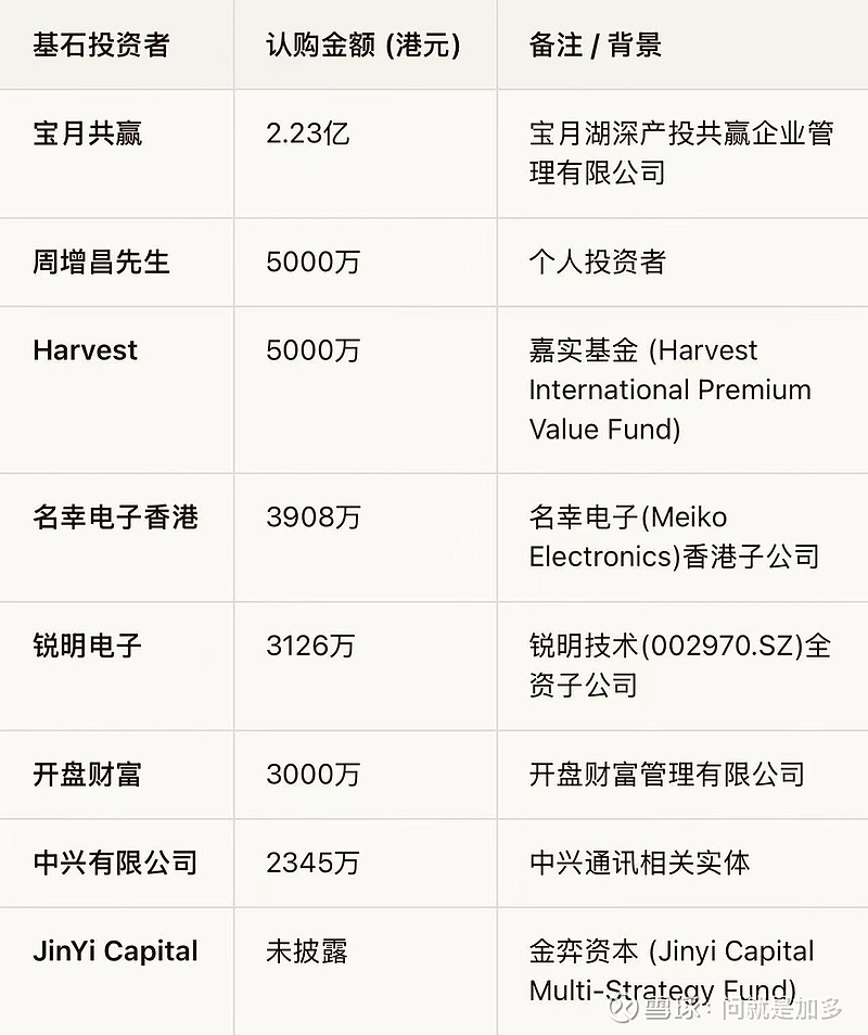 基石阵容中包含了锐明技术(车载电子龙头)、名幸电子(PCB供应商)等产业链上下游企业,并且引入了嘉实基金等知名公募,以及宝月共赢(深圳国资背景)等机构。没有大牌基石,占比45.4%还行。