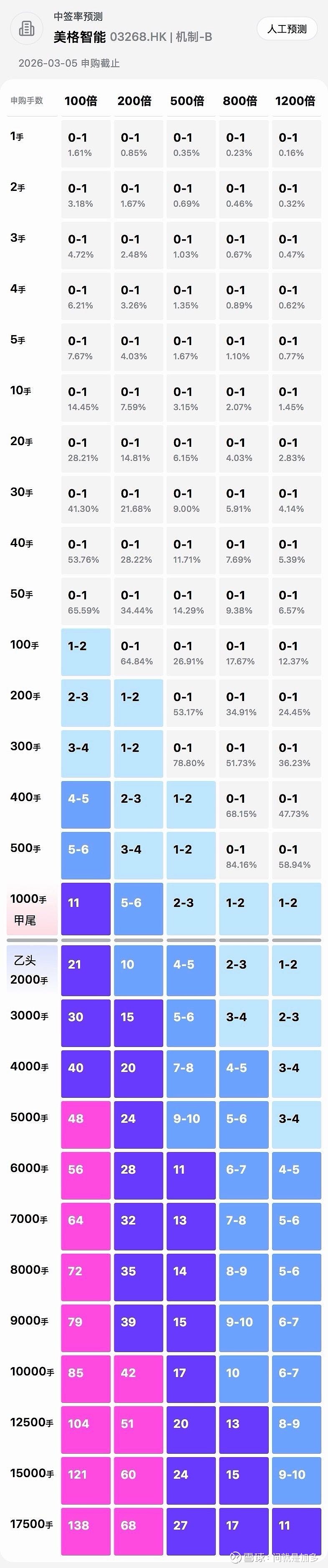 $美格智能 (03268.HK)$ AH股,折价将近50%了,半折优惠,首日入通,但是一手价格只有2915,发行11.79%股份,公开1个亿的货,B机制,甲乙一共35000手。