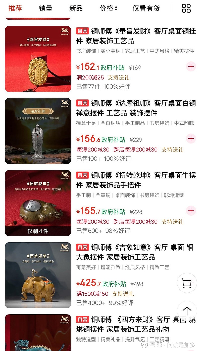 铜师傅是一家文创工艺品品牌,成立于2013年,核心业务是设计和销售以铜材质为主的文创产品(如摆件、礼品),同时也覆盖塑胶潮玩、银质和黄金文创产品。