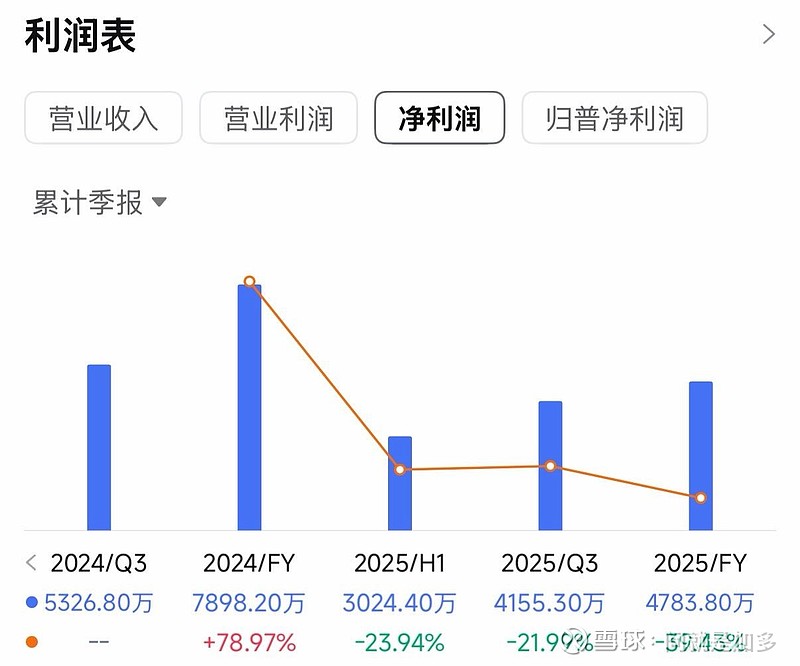 净利分别约为人民币0.57亿、0.44亿、0.79亿、0.53亿、0.42亿,2025年前9月同比-21.99%;