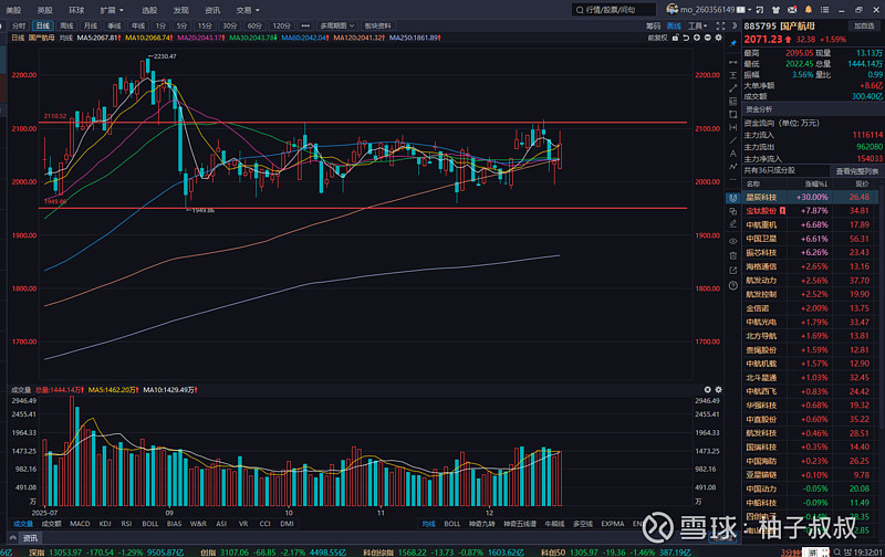 4,商业航天没有突破前高,出现冲高回落,但板块里面没有出现多家跌停,说明商业航天还具备一定的上涨意愿