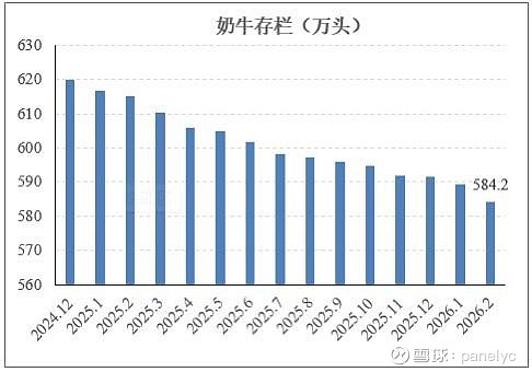 1月去化2万头,2月去化5.3万头,是2025年以来单月最高,奶牛存栏马上到580万头,反转渐近
