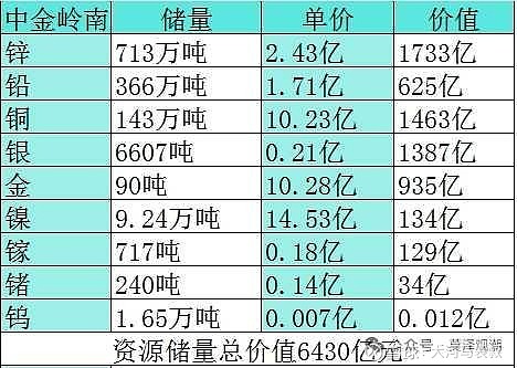 已探明的各种金属资源储量价值6千亿