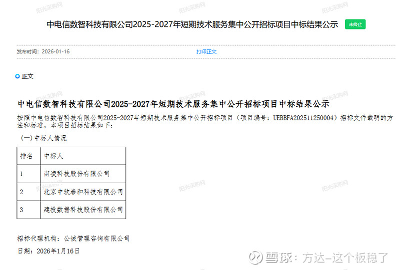 南凌科技中标中电信数智科技有限公司2025-2027年短期技术服务
