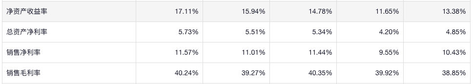 公司的净资产收益率并不是特别的高,当然也不差,整体还是上升的,利润率也是比较高的,资产负债率是中等偏高一点