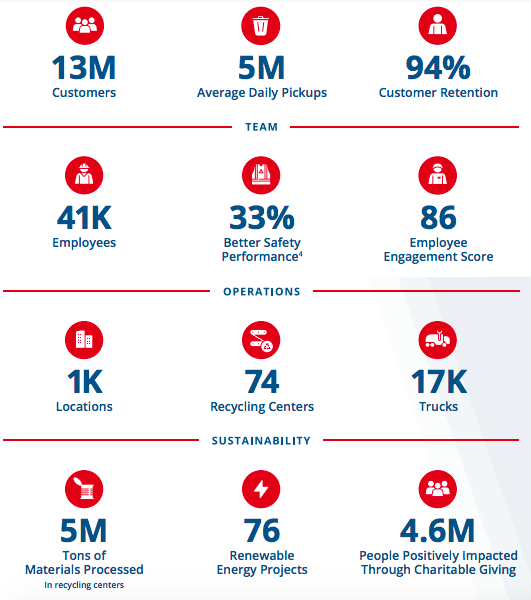 共和废品处理公司于1996年在特拉华州注册成立。该公司是美国最大的环境服务提供商之一。该公司通过364个收集作业、246个中转站、74个回收中心、207个活跃的垃圾填埋场、3个处理、回收和处置设施、22个处理、储存和处置设施(TSDF)、6个盐水处理井、12个深注井和1个聚合物中心在美国和加拿大开展业务。该公司从事76个垃圾填埋场燃气发电和其他可再生能源项目,并对126个封闭式垃圾填埋场负有关闭后的责任。