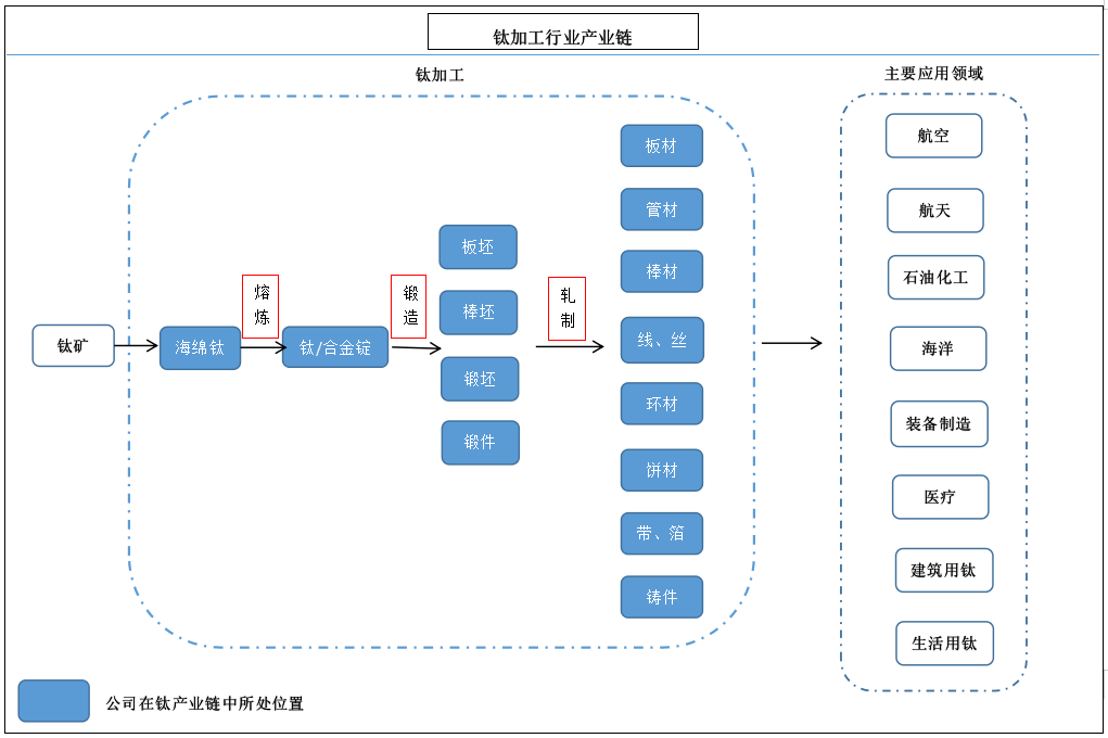 公司主要从事钛及钛合金的生产、加工和销售,是中国最大的钛及钛合金生产、科研基地。公司拥有国际先进、完善的钛材生产体系,主要产品为各种规格的钛及钛合金板、带、箔、管、 棒、线、锻件、铸件等加工材和各种金属复合材产品。