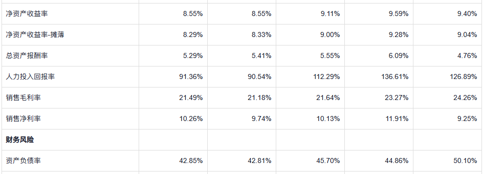 公司的净资产收益率中规中矩吧,并不是属于那种很惊艳的。利润率比较稳定,毛利不高,但是净利润又不算很低,但是跟白酒这种企业是没法比。