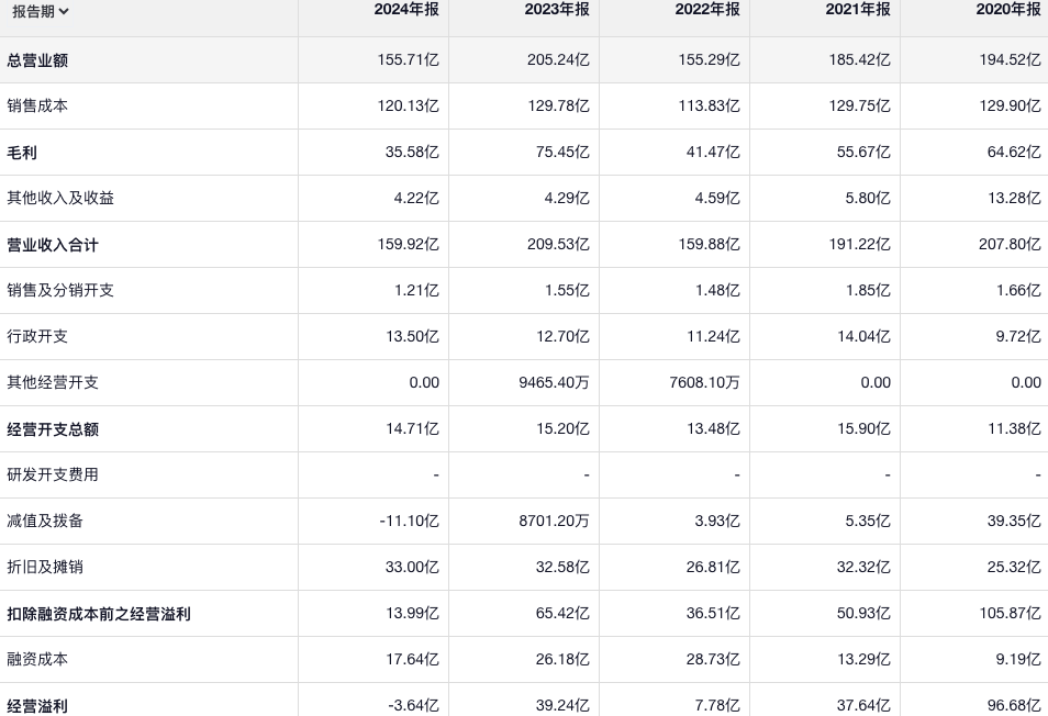 公司的毛利起伏还挺大,行政开支变化不大,减值起伏比较大,折旧一年有33亿,融资成本挺高的,经营利润起伏很大,这几年的例如主要受下面两项影响