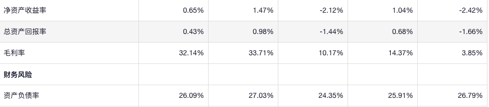 公司的 净资产收益率很低,非常低,利润率倒是还可以,负债率也很低
